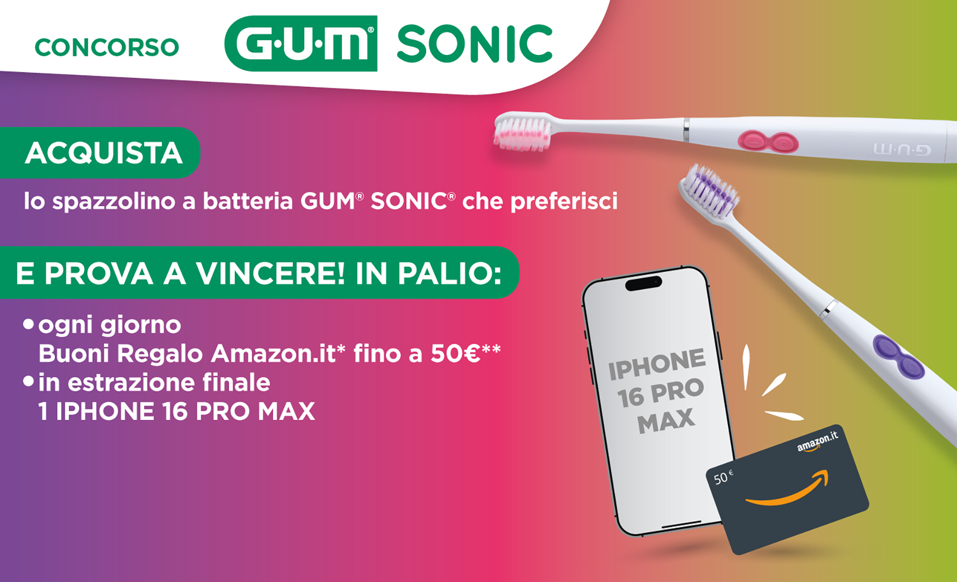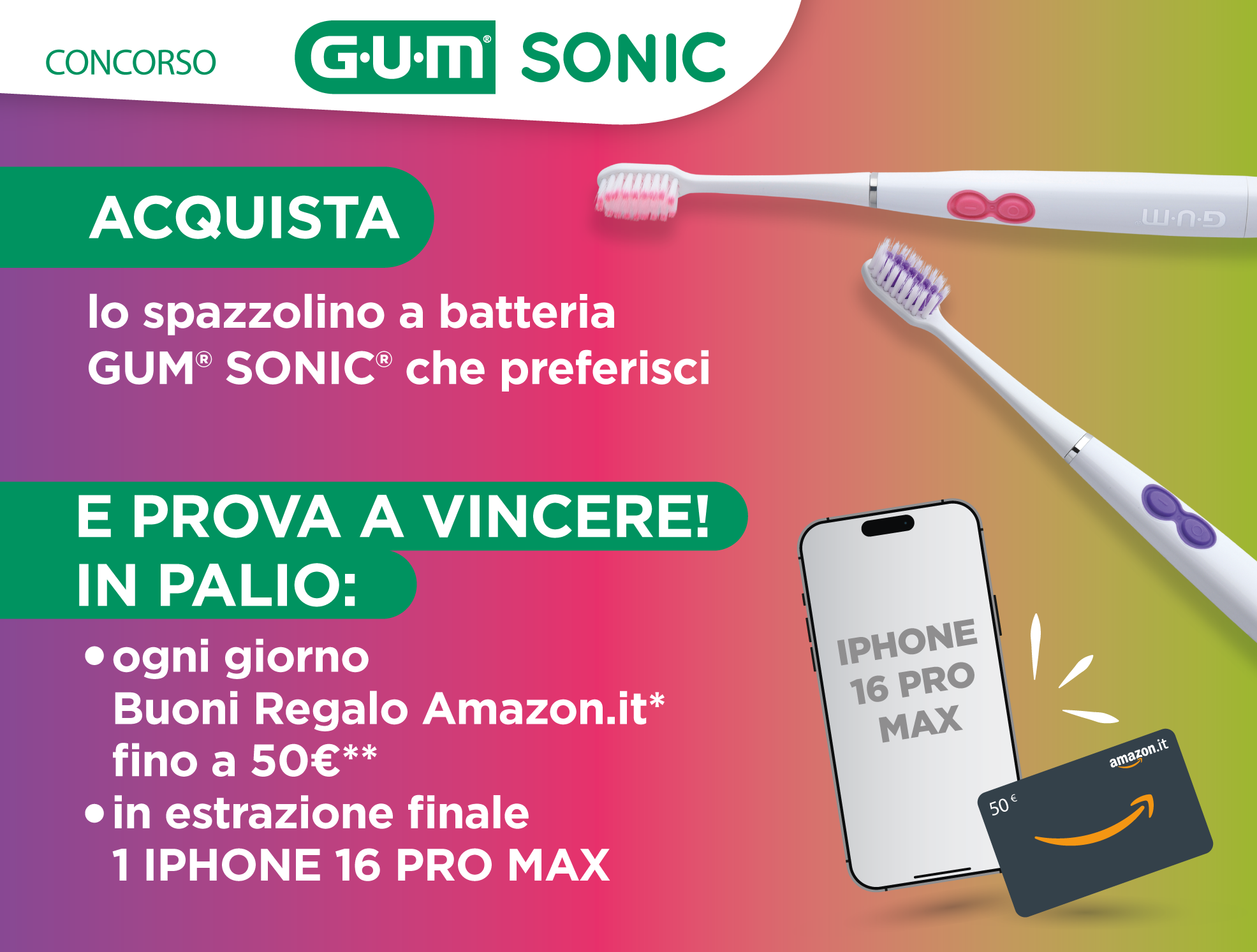 Dalle 00:00 del 02/09/25 alle 23:59 del 30/11/25 acquista lo spazzolino a batteria GUM SONIC che preferisci.